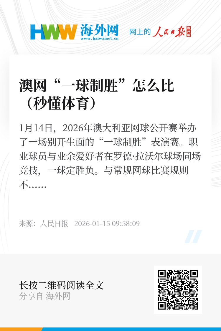 1月14日,2026年澳大利亚网球公开赛举办了一场别开生面的“一球制胜”表演赛。职业球员与业余爱好者在罗德·拉沃尔球场同场竞技,一球定胜负。