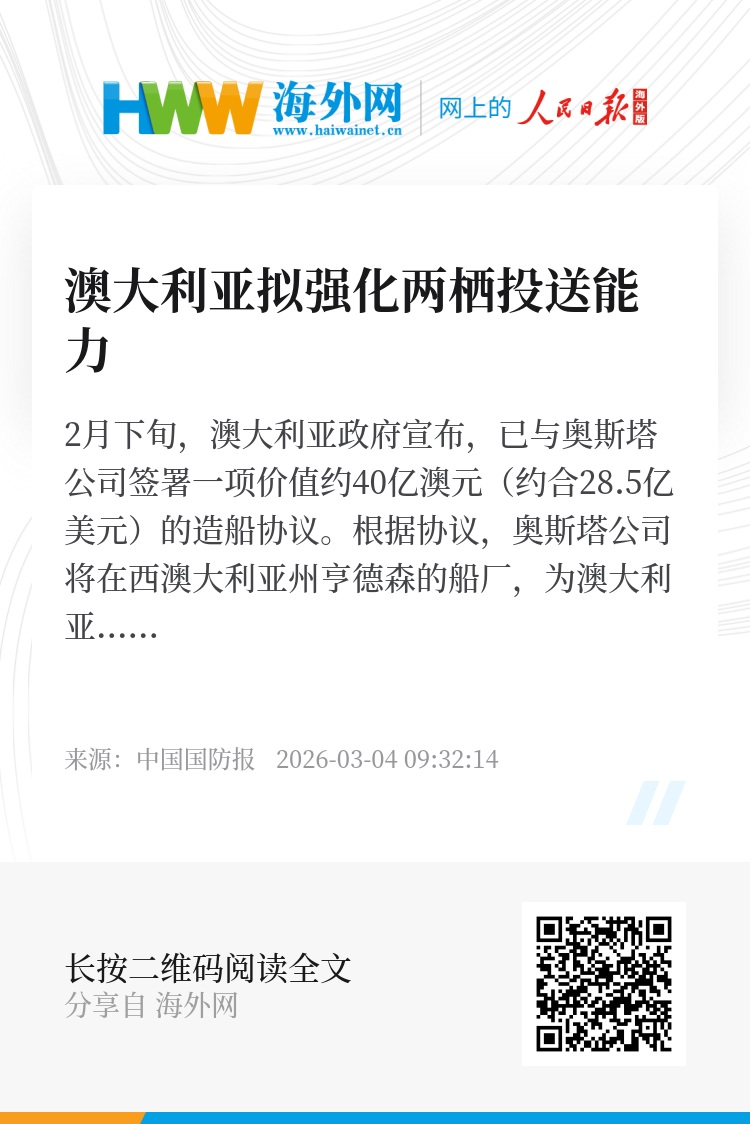 值得注意的是,奥斯塔公司为澳大利亚国防军建造重型登陆舰的同时,还在位于美国阿拉巴马州莫比尔厂区为美海军建造多用途登陆艇。奥斯塔公司称,借助澳美同步推进两栖舰艇建造的契机,双方可在模块化建造、供应链管理等方面深化技术交流,保持装备协同性。(谢石林)